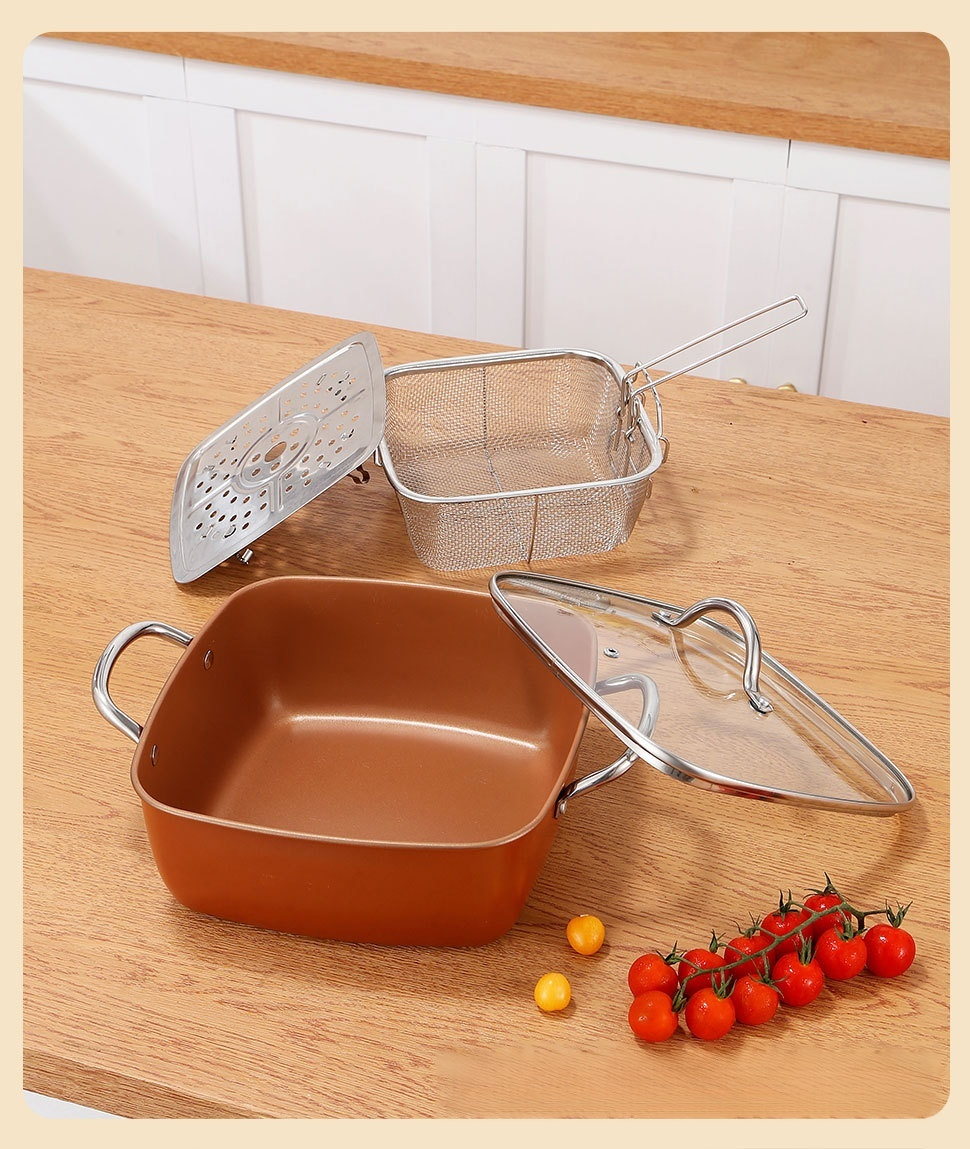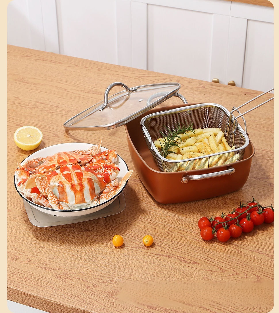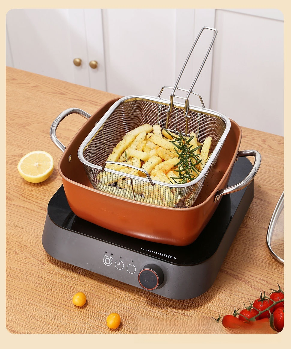 ディープフライヤー銅鍋9.5インチ4ピーススクエアステンレススチールディープフライヤー